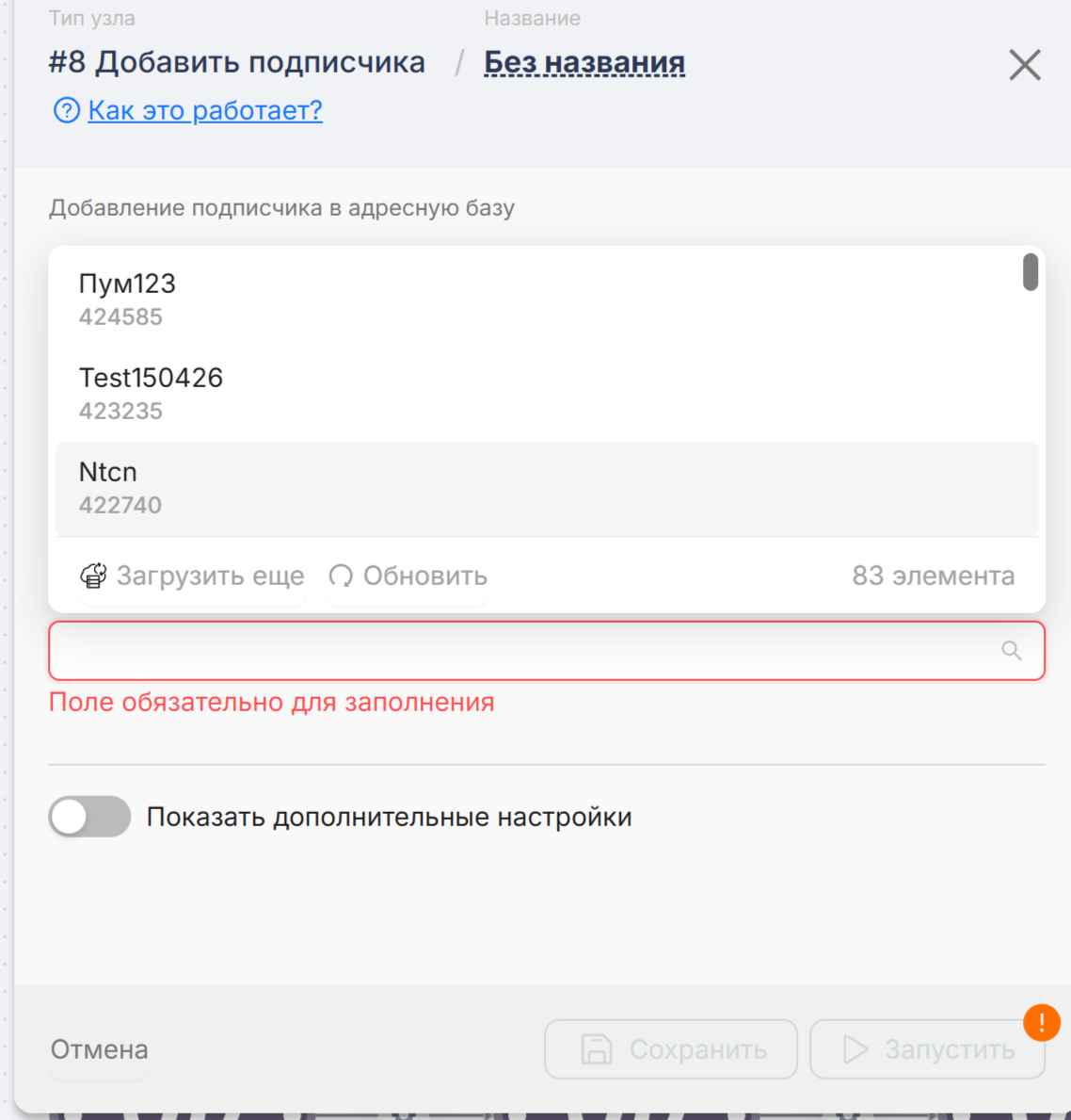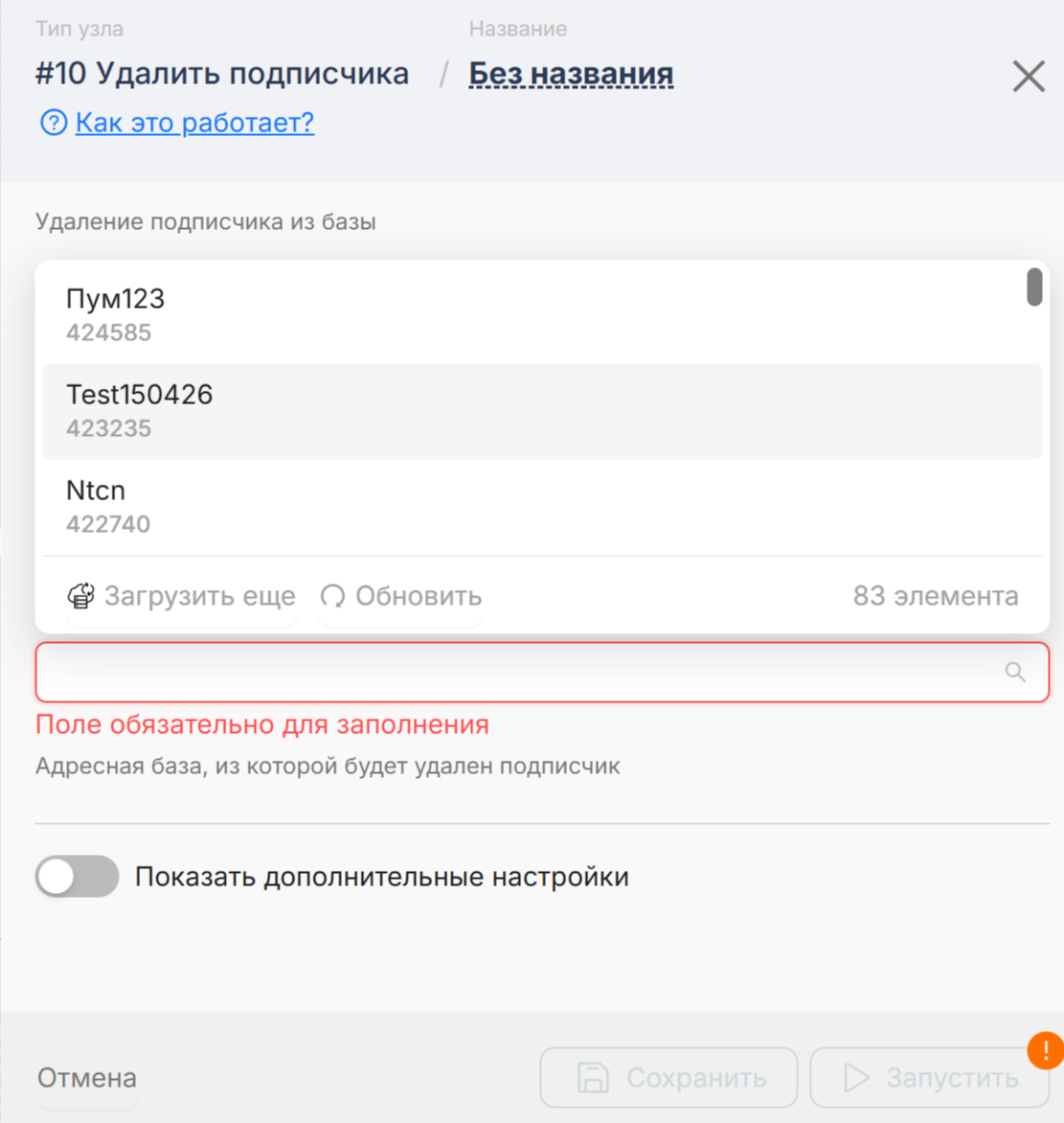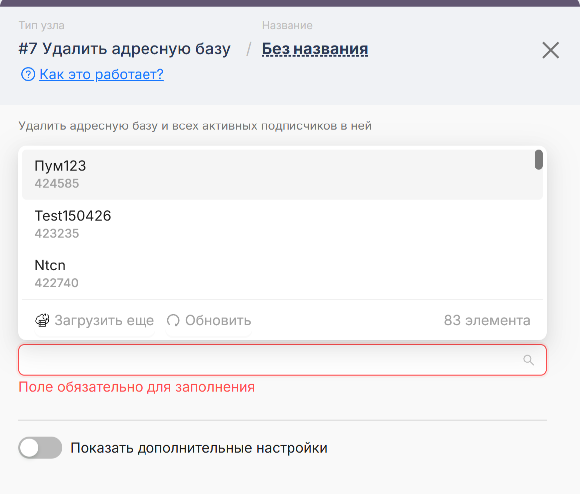 Выберите адресную базу, в которой планируете удалять подписчиков