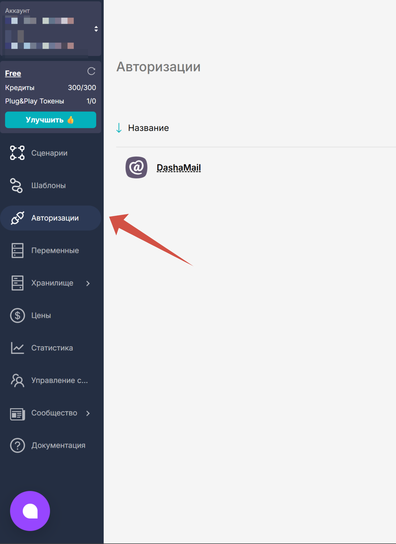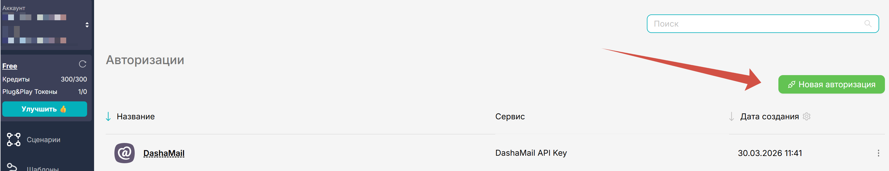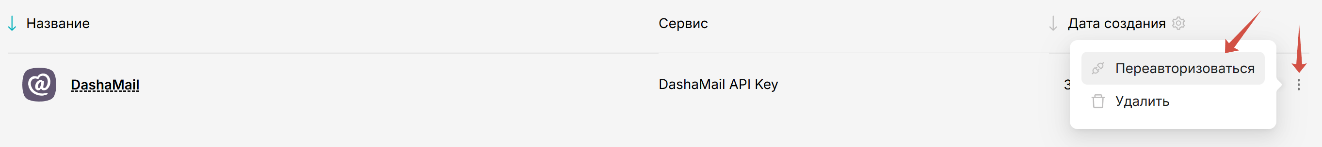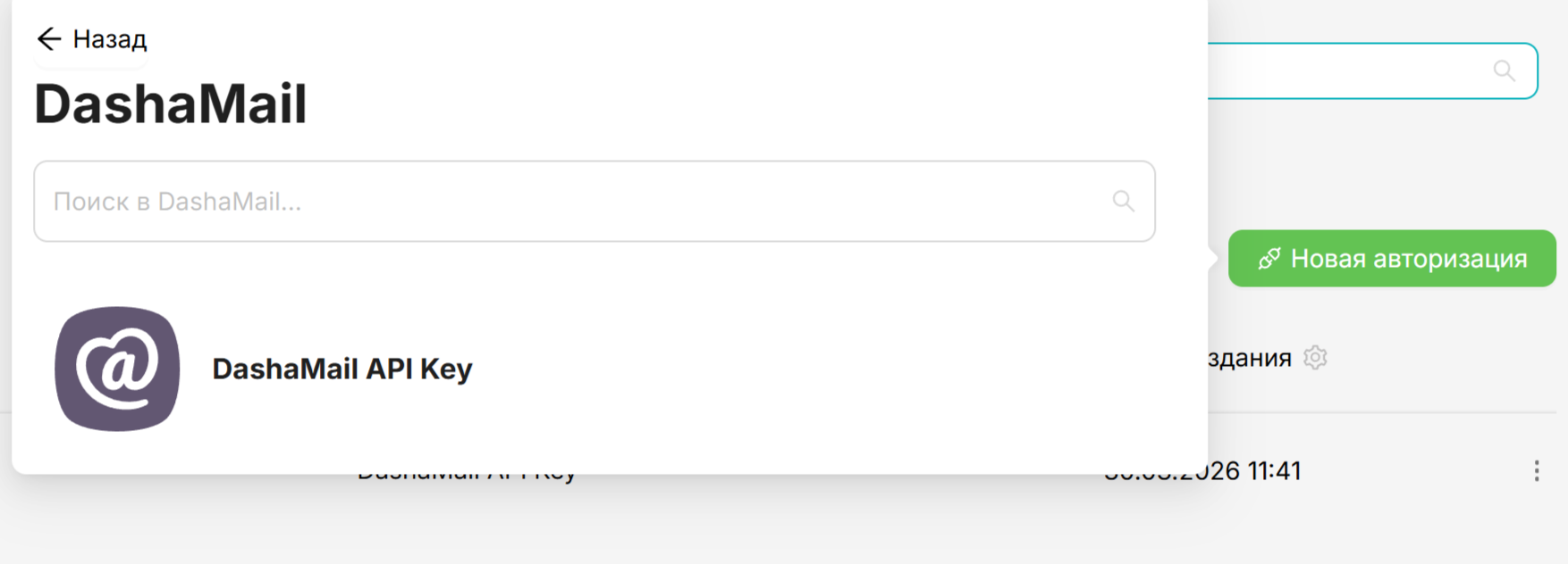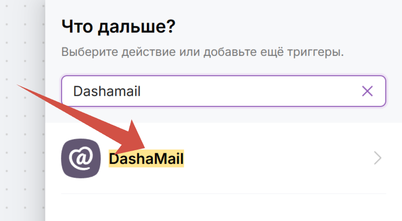 Найдите DashaMail в списке сервисов