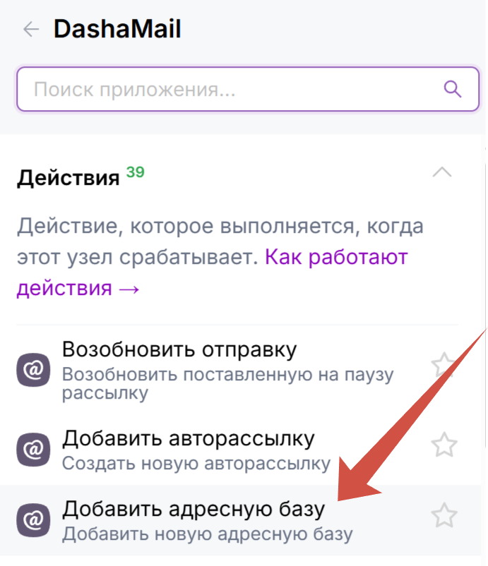 Найдите среди функций DashaMail “Создать адресную базу”