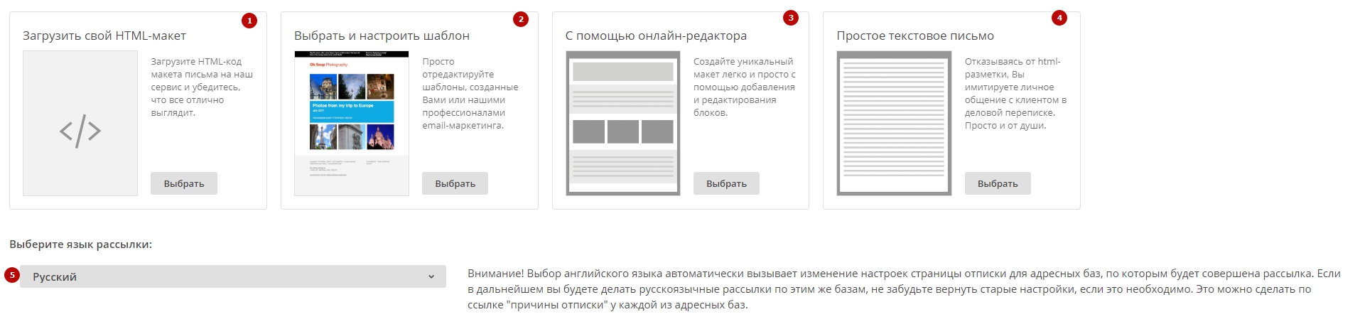 Нажимаем на "Создать Макет Письма", далее выбираем один из способов создания макета (каждый из которых мы рассмотрим отдельно в базе знаний):