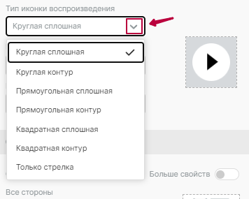 4. Блок, который отвечает за внешний вид кнопки воспроизведения. Здесь вы можете задать: