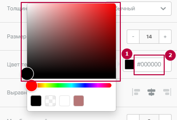 А также задать цвет. Цвет устанавливается с помощью цветовой палитры (1) или RGB (2):